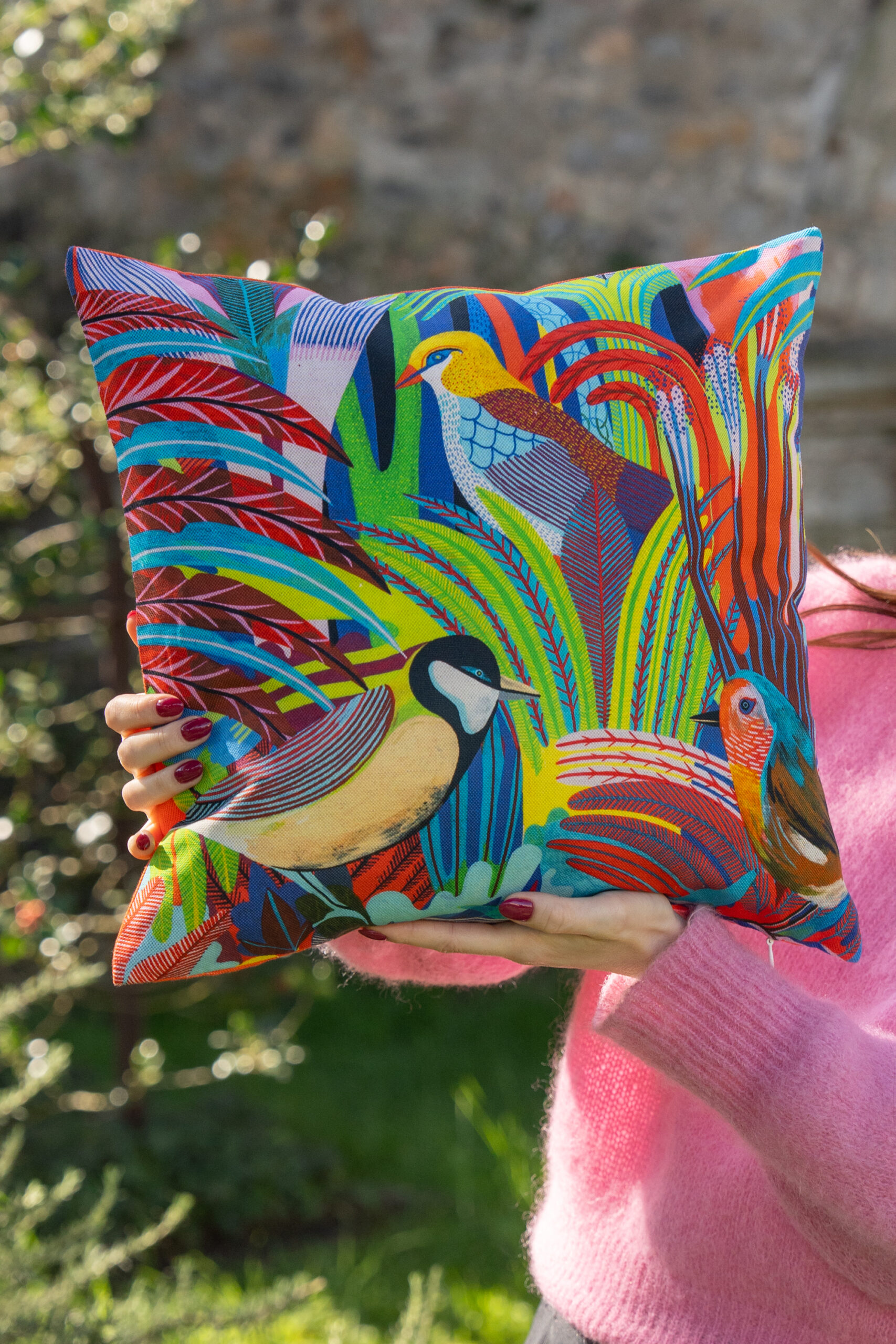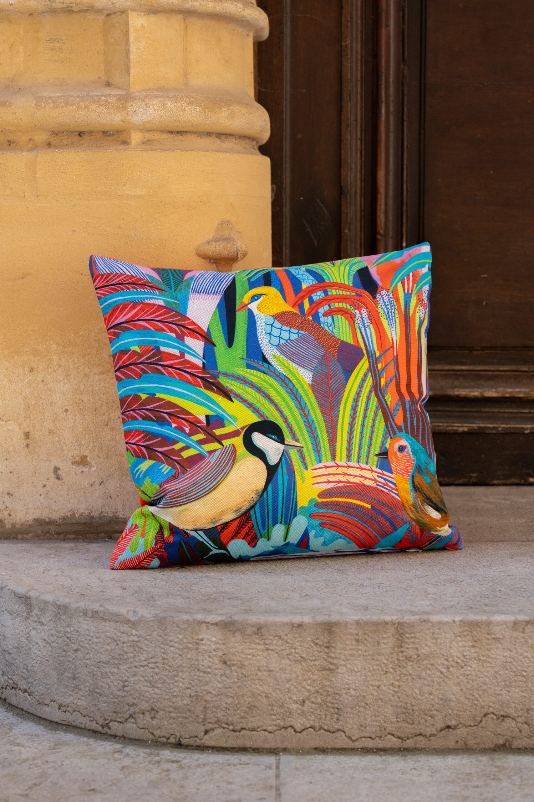 Coussin 100% coton imprimé et confectionné en Europe en édition ultra limitée, réalisé en collaboration avec la maison d’éditions textile lyonnaise Ames Sœurs.