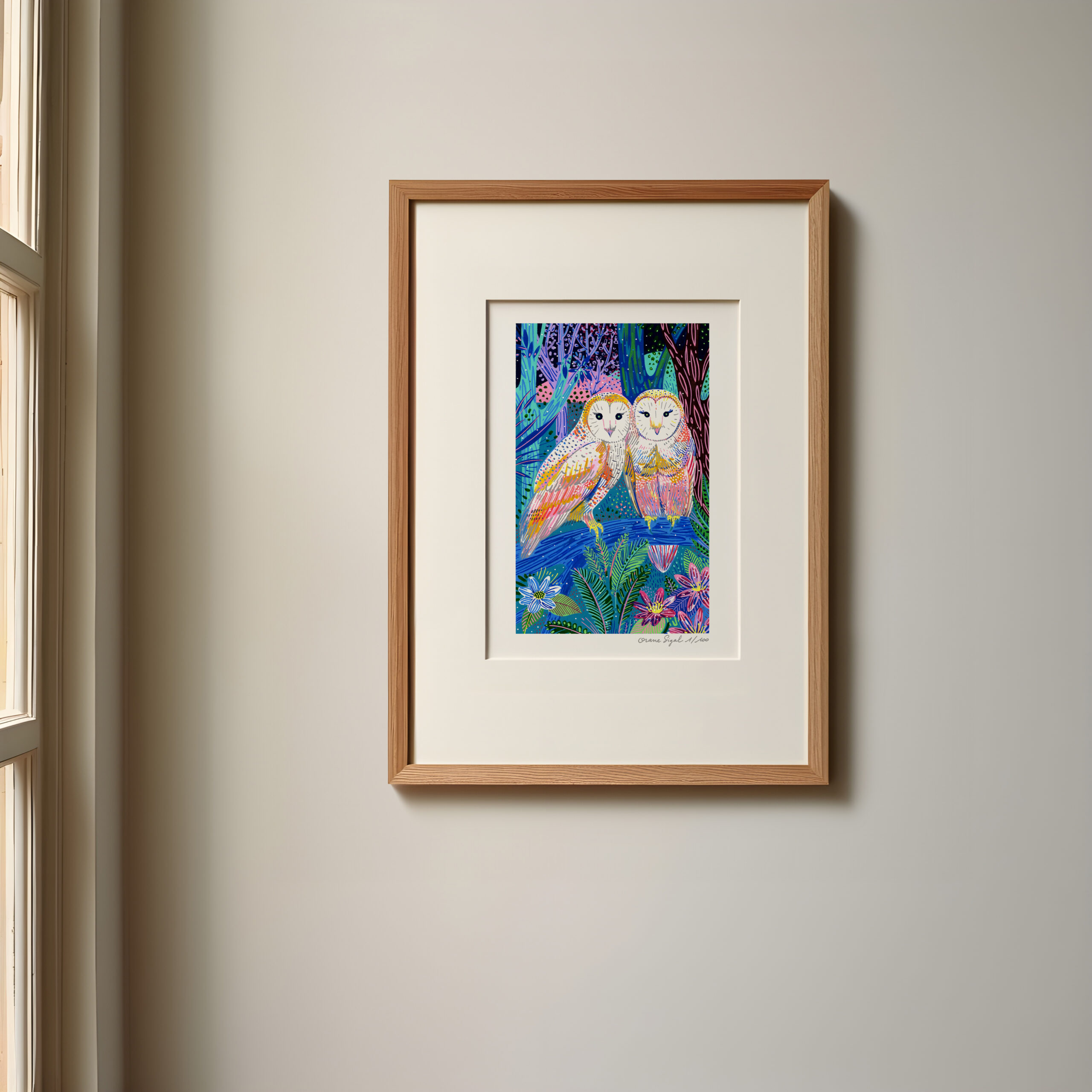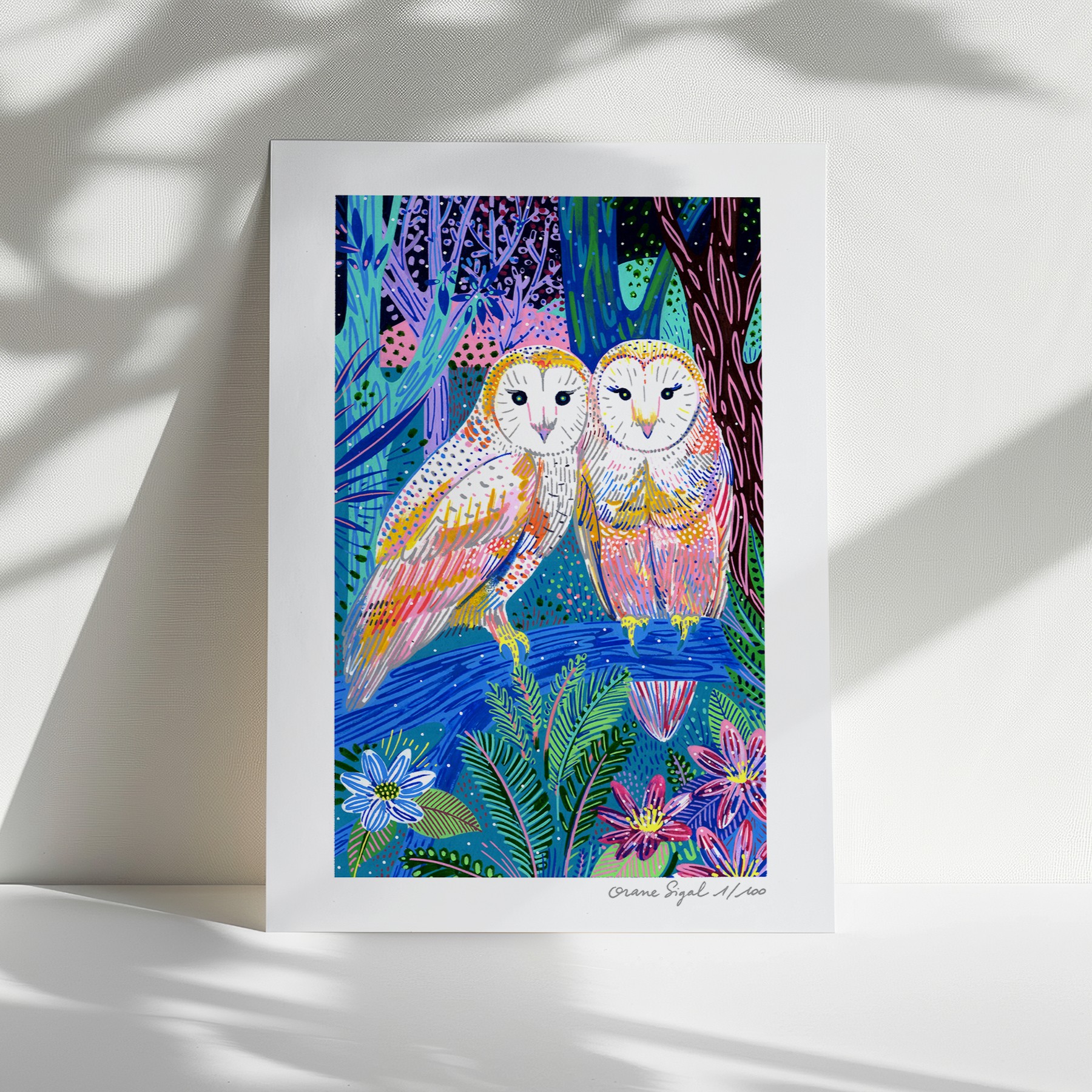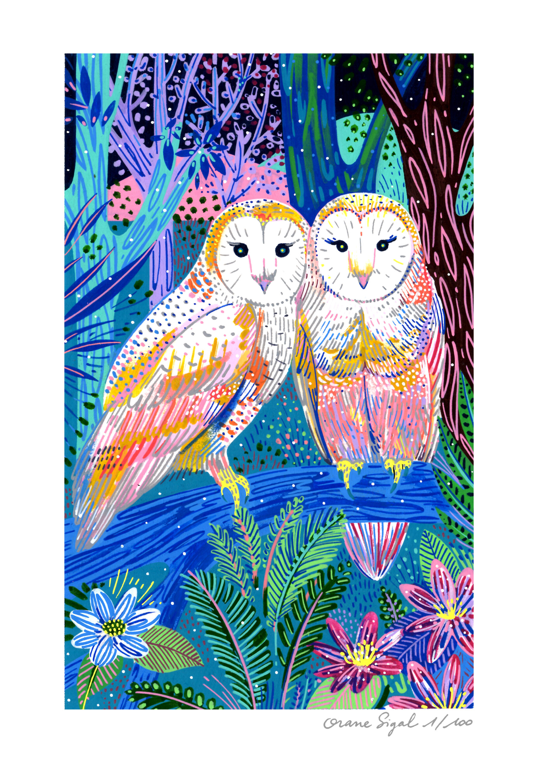 Les chouettes – Tirage à encres pigmentaires – A5 (14,8 x 21) – 25 euros